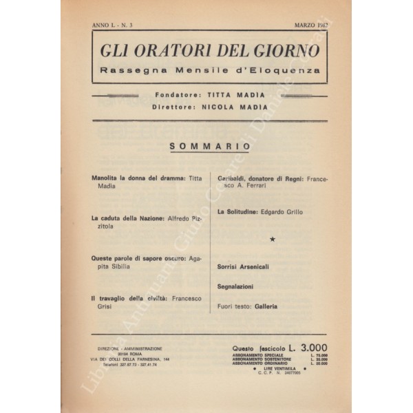 Gli oratori del giorno. Rassegna mensile d'eloquenza. Anno L - Numero 3. Marzo 1982