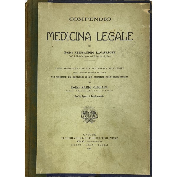 Compendio di medicina legale. Prima traduzione autorizzata dall'autore sulla seconda edizione francese con riferimenti alla legislazione ed alla letteratura medico-legale italiana del Dottor Mario Carrara. Con 124 Figure e 2 Tavole colorate