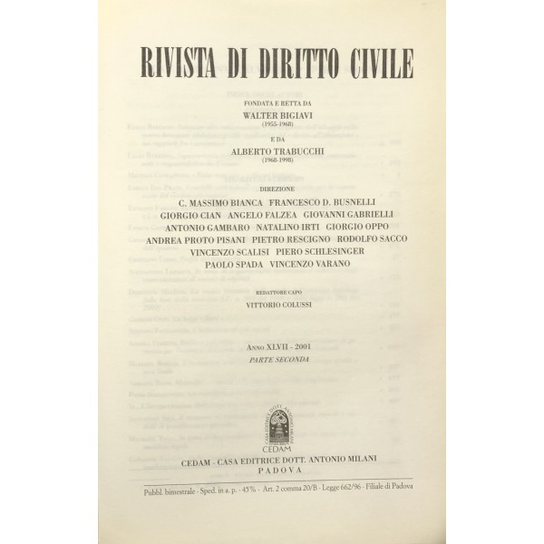 Rivista diretta da: Allorio, Bigiavi, Carraro, Carresi, Minervini, Oppo, Rescigno, Santini, Scognamiglio, Trabucchi.