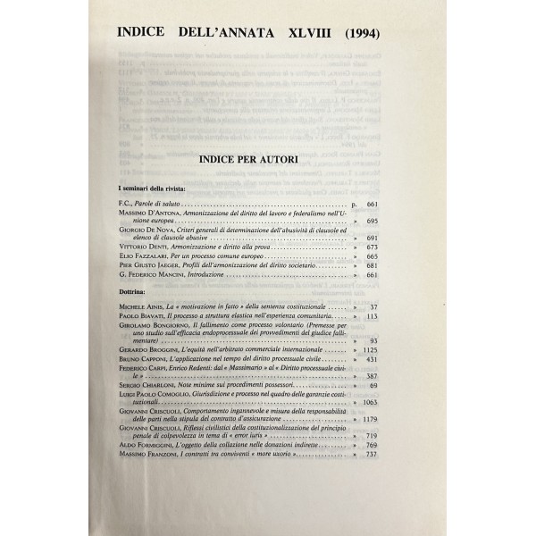 Rivista trimestrale di diritto e procedura civile. Fondata da: A. Cicu, E. Redenti e T. Carnacini. Diretta da: G. Auletta, M. Bin, F. Carpi, G. De Nova, F. Galgano, M. Giorgianni, N. Irti, G.F. Mancini, L. Mengoni, U. Romagnoli, F. Santoro Passarelli, M. Taruffo. Anno XLVIII - 1994