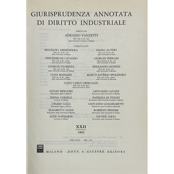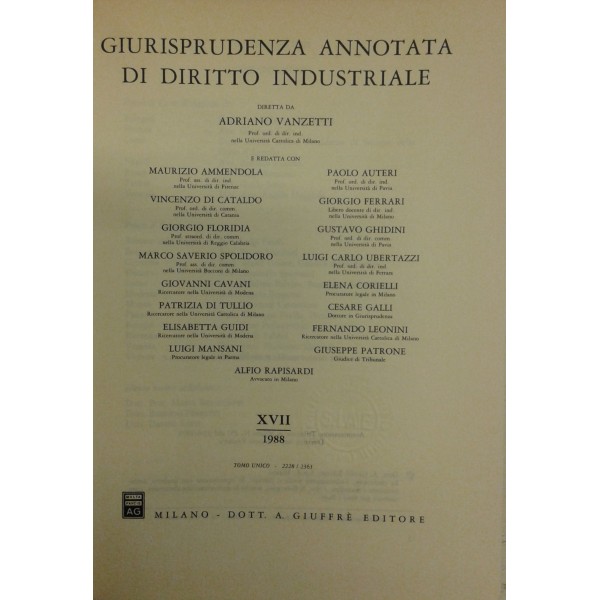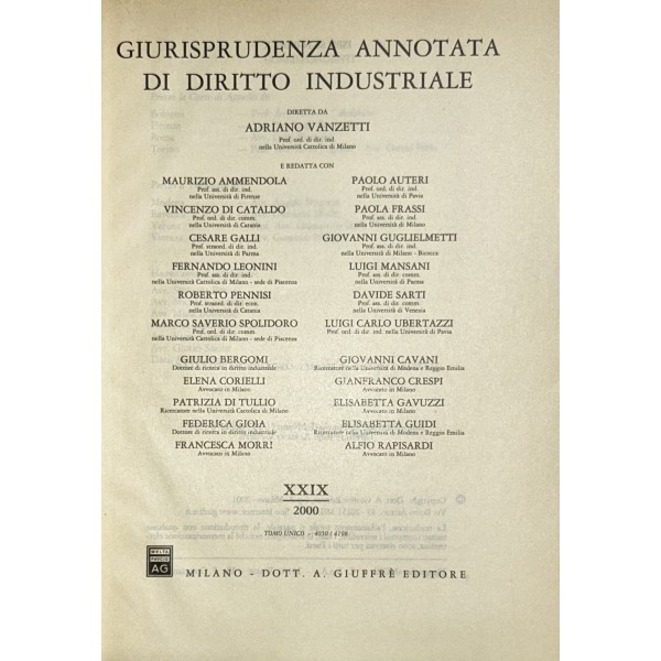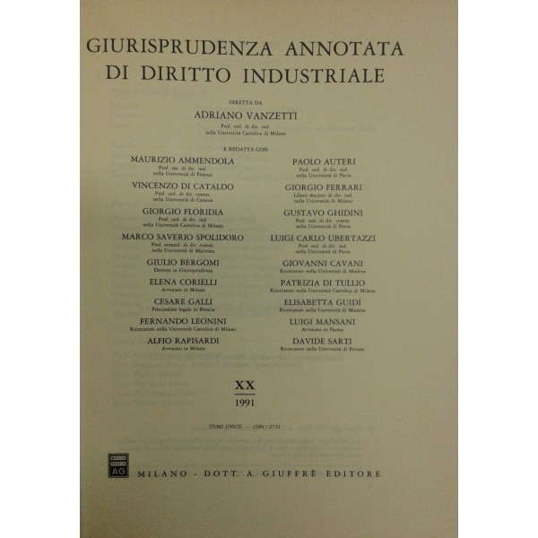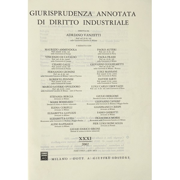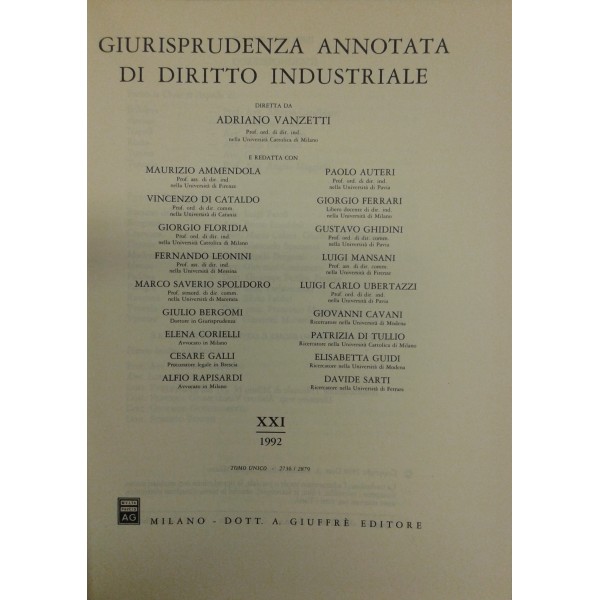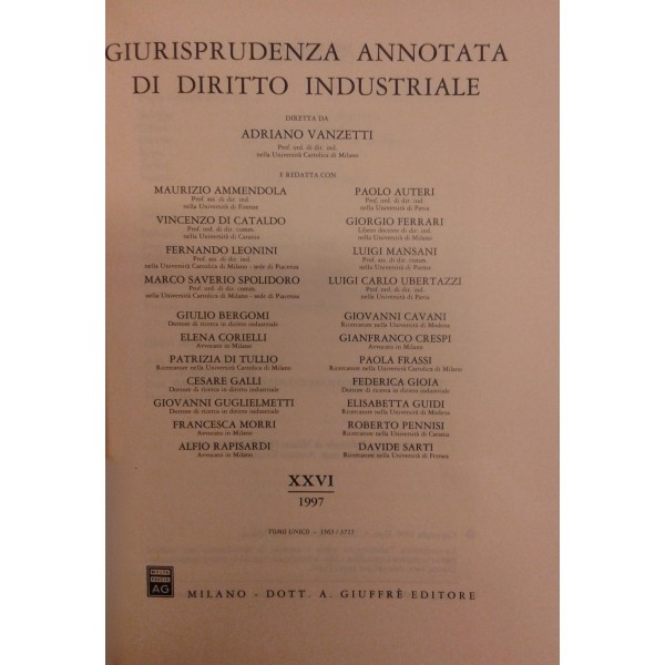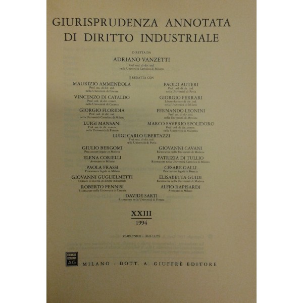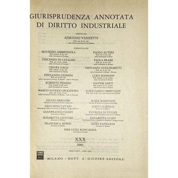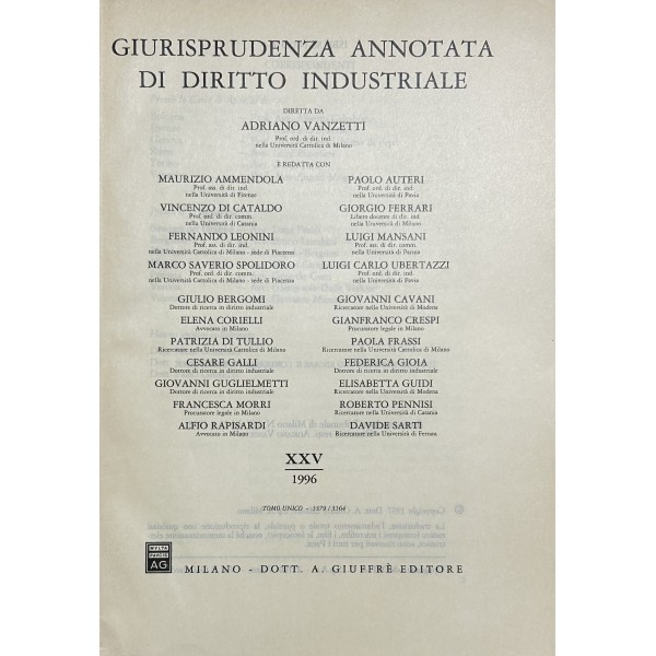 Giurisprudenza annotata di diritto industriale. Diretta da Adriano Vanzetti. Anno VIII - 1979 - Anno XXXVI - 2007