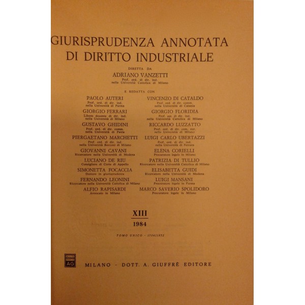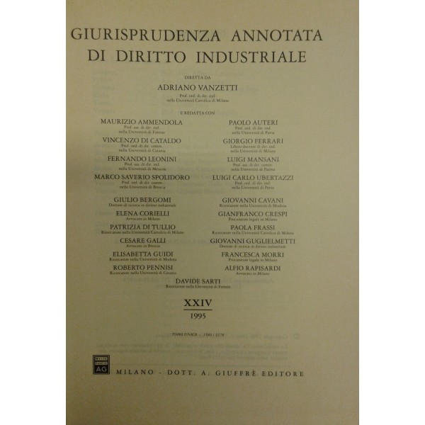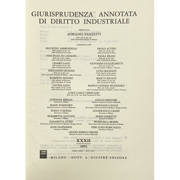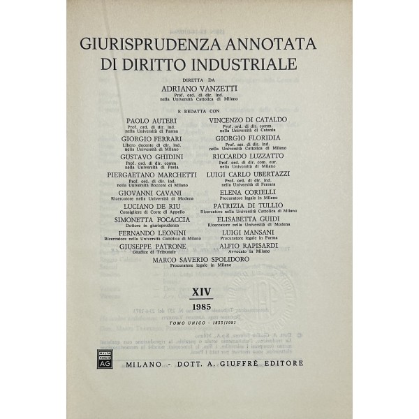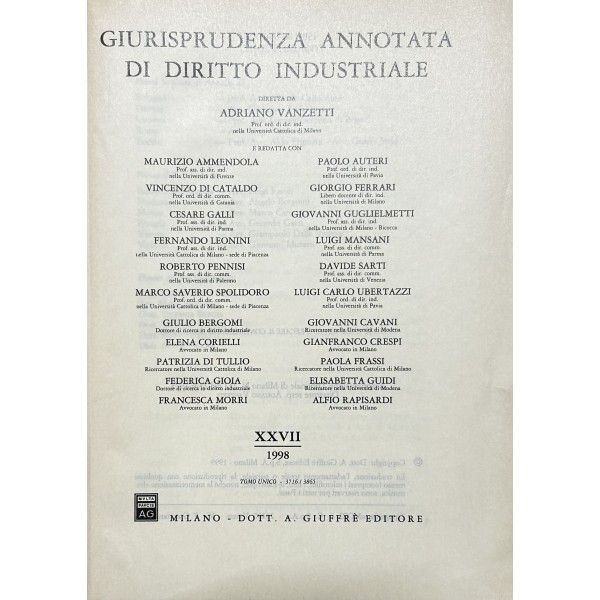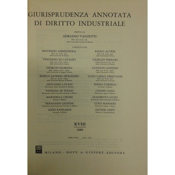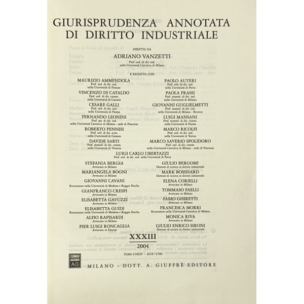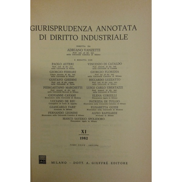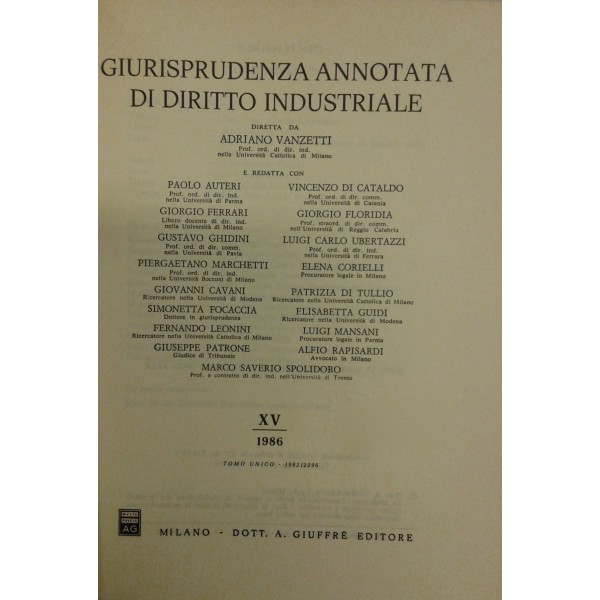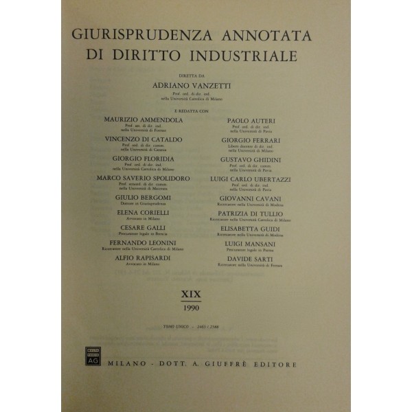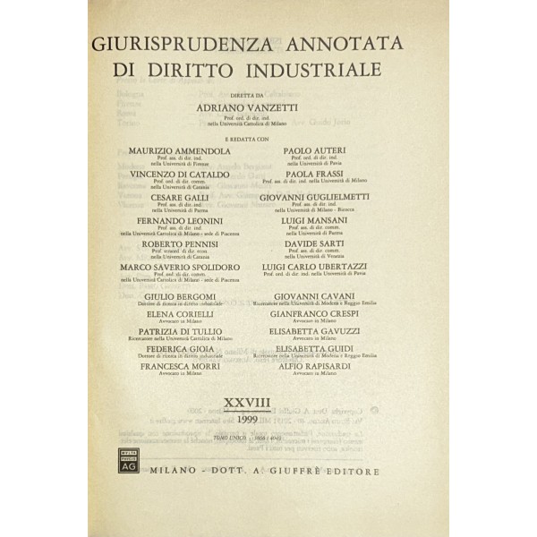 Giurisprudenza annotata di diritto industriale. Diretta da Adriano Vanzetti. Anno VIII - 1979 - Anno XXXVI - 2007