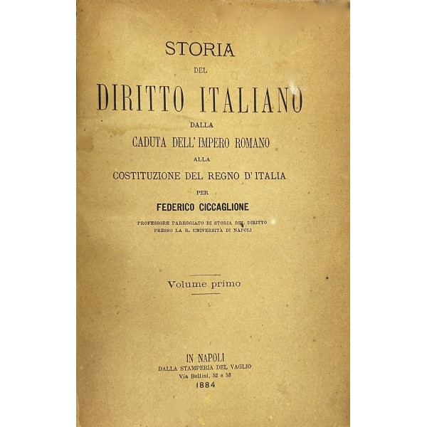 Storia del diritto italiano dalla caduta dell'Impero Romano alla Costituzione del Regno d'Italia. Volume primo (unico pubblicato)