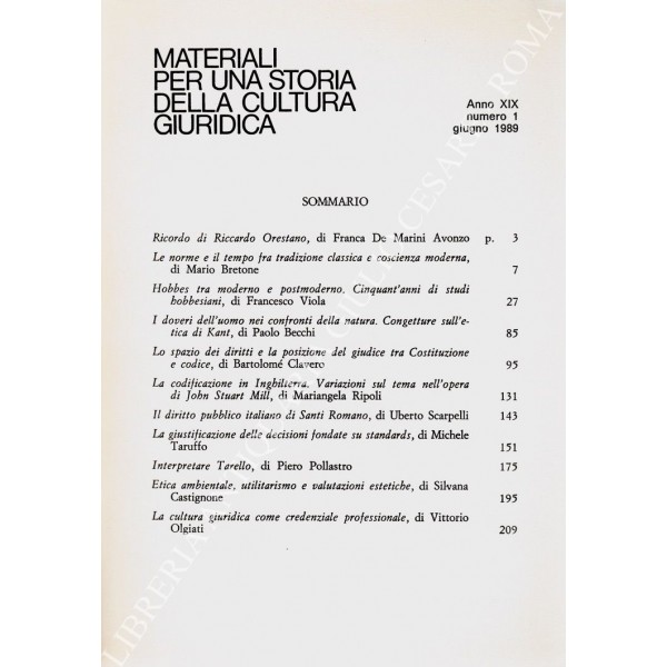 Scritti di: Barberis, Baroncelli, Becchi, Bretone, Castignone, Clavero, De Marini, Ferrarese, Gianformaggio, Giordano, Marra, Olgiati, Pollastro, Raiteri, Raphael, Ripoli, Scarpelli, Scholz, Taruffo, Viola