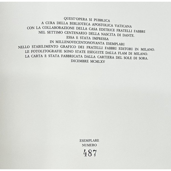 Il Dante Urbinate della Biblioteca Vaticana. (Codice urbinate latino 365). Riproduzione del Codice