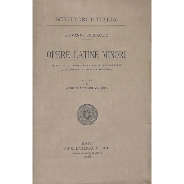 Opere latine minori. (Buccolicum Carmen, Carminum et Epistolarum quae supersunt, Scripta breviora). A cura di Aldo Francesco Massera