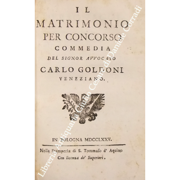 Opere teatrali del sig. avvocato Carlo Goldoni veneziano fra gli Arcadi Polisseno Fegejo. Vol. I - Il Buon Compatriotto, La Buona Madre, La Griselda, Il Matrimonio per Concorso, Il Prodigo, L'Uomo Prudente; Vol. II - L'Amore Paterno o sia la Serva Riconoscente, La Banca Rotta o sia Mercante fallito, Il Cavaliere e la Dama, Un Curioso Accidente, Le Massare, Il Padre di Famiglia