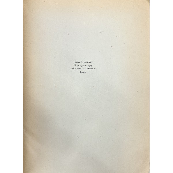 Edizione composta dallo stesso poeta con alcuni componimenti che compaiono in prima edizione. Stampato da Stab. A. Staderini il 31 agosto 1945