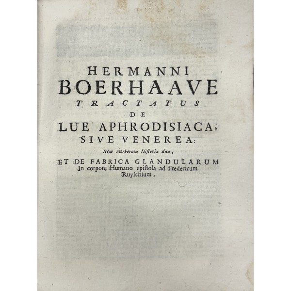 Opera omnia medica, quorum series post praefationem subjicitur. UNITO A: Aphorismi de cognoscendis et curandis morbis in usum doctrinae domesticae digesti. UNITO A: Tractatus de lue aphodisiaca, sive venerea: Item morborum historiae due, et de fabrica glandarum in corpore humano epistola ad Fredericum Ruyschium
