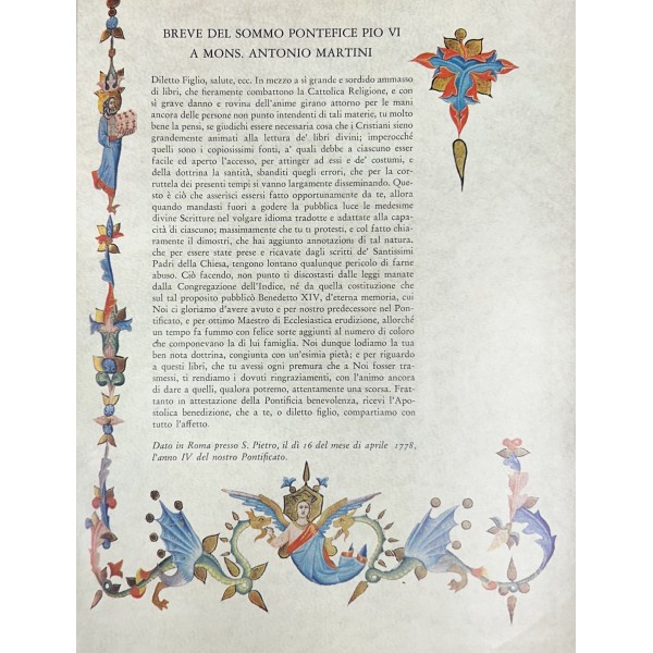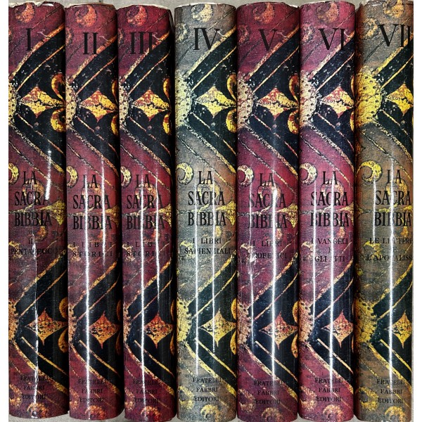 La Sacra Bibbia. Antico e Nuovo Testamento. Traduzione Di Monsignor Antonio Martini. Revisione di Monsignor Luigi Nazari di Calabiana. Vol. I - Il Pentateuco; Vol. II - I Libri storici (da Giosuè ai 4 Libri del Re); Vol. III - Libri storici (dai Paralipomeni ai Maccabei); Vol. IV - Libri Sapienzali (da Giobbe a l' Ecclesiastico); Vol. V - I Libri profetici; Vol. VI - I quattro Vangeli e gli Atti degli Apostoli; Vol. VII - Le Lettere degli Apostoli e l'Apocalisse