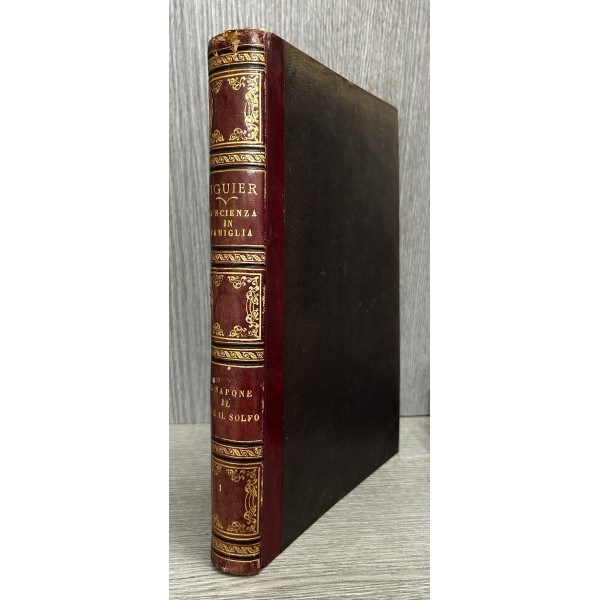 La scienza in famiglia o nozioni scientifiche sugli oggetti comuni della vita di Luigi Figuier. Tradotta da Carlo Anfosso con numerose note ed aggiunte. Opera illustrata da 325 incisioni. UNITO A: Il sapone, il sale, il solfo. Le sode e le potasse. L'acido solforico.. Traduzione autorizzata dall'Autore con numerose aggiunte per la parte italiana con 146 incisioni