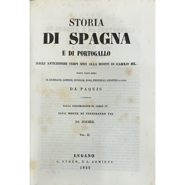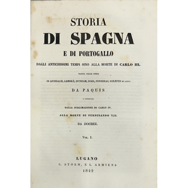 Storia di Spagna e di Portogallo dagli antichissimi tempi sino alla morte di Carlo III. Tratta dalle opere di Aschbach, Lembke, Dunham, Bossi, Ferreras, Schaefer ed altri da Paquis e continuata dalla sublimazione di Carlo IV alla morte di Ferdinando VII da Dochez