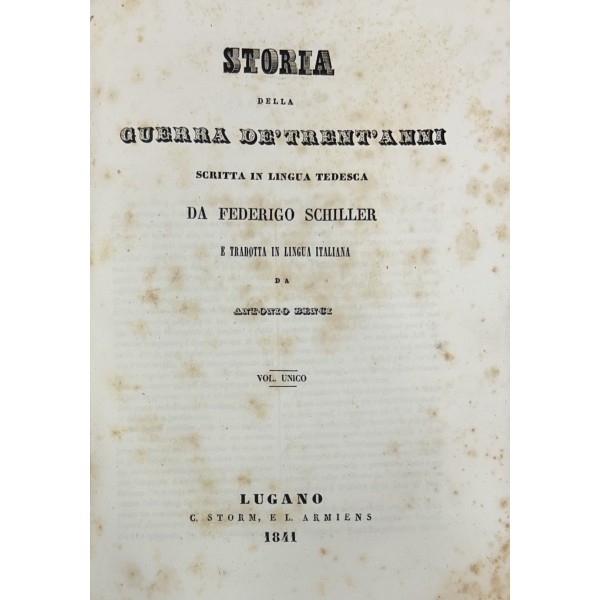 Storia della guerra de' trent'anni scritta in lingua tedesca da Federico Schiller e tradotta in lingua italiana da Antonio Benci. Vol. unico