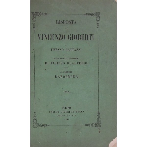 Risposta di Vincenzo Gioberti a Urbano Rattazzi sopra alcune avvertenze di Filippo Gualterio al generale Dabormida