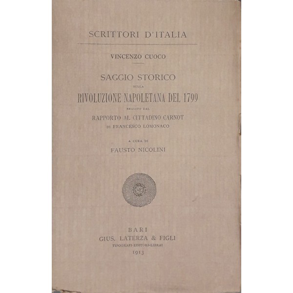 Saggio storico sulla Rivoluzione Napoletana del 1799 seguito dal rapporto al cittadino Carnot di Francesco Lomonaco. A cura di Fausto Nicolini